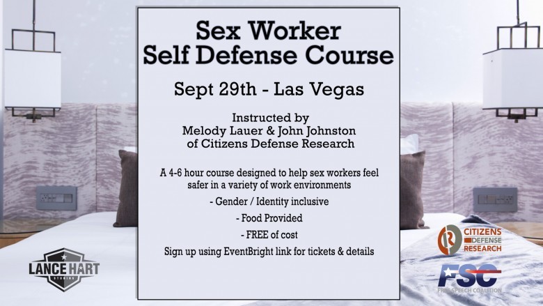 “I see the outrage about sex worker assaults happening almost every day on Twitter. It makes me feel all kinds of things, too,” says Lance Hart. “Some of my close friends have been hurt in terrible ways. It’s time we start doing something about it. We can’t make other people stop being evil, but we can make ourselves more dangerous to attack. One class won’t turn any sex workers into ninjas in four hours, but it’s a start. If this class is well attended and helps people feel safer, I plan to put a lot more on. I’ve already spoken with Baer Solutions about the next one. I travel around the country to train with some of the best. Not everyone can do that, so I’m bringing two of the best, John and Melody to Vegas. They were suggested by some of the people I train with, and I think they are a great fit for this cause. I gave them two problems to deal with Ubers and hotels. They gave me a clear strategy for both, and I’m excited to learn from them. I’m very grateful to the FSC for helping with half my cost of the first class.”