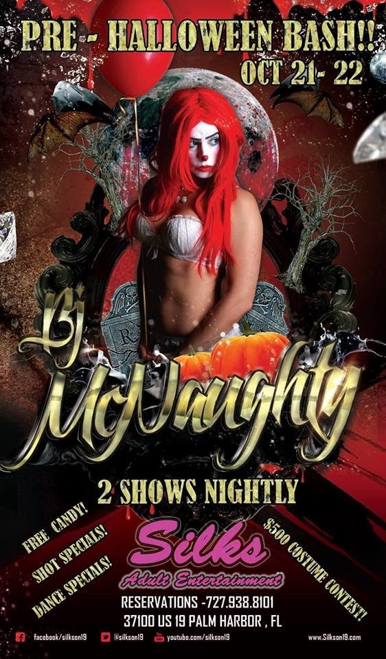 Feature Entertainer & Showgirl BJ McNaughty will be feature dancing at Silks Gentlemen’s Club in Palm Harbor, FL on Friday October 21st and Saturday October 22nd,