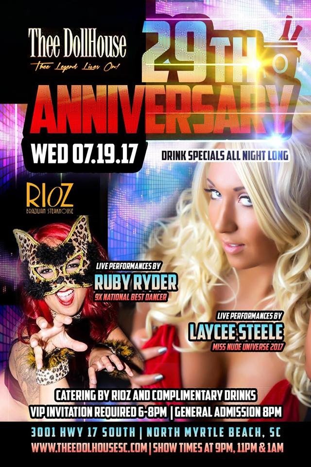 Laycee Steele & Ruby Ryder will be feature dancing at Thee Dollhouse Gentlemen’s Club in North Myrtle Beach, SC on Wednesday July 19th, 2017 and Thursday July 20th, 2017.