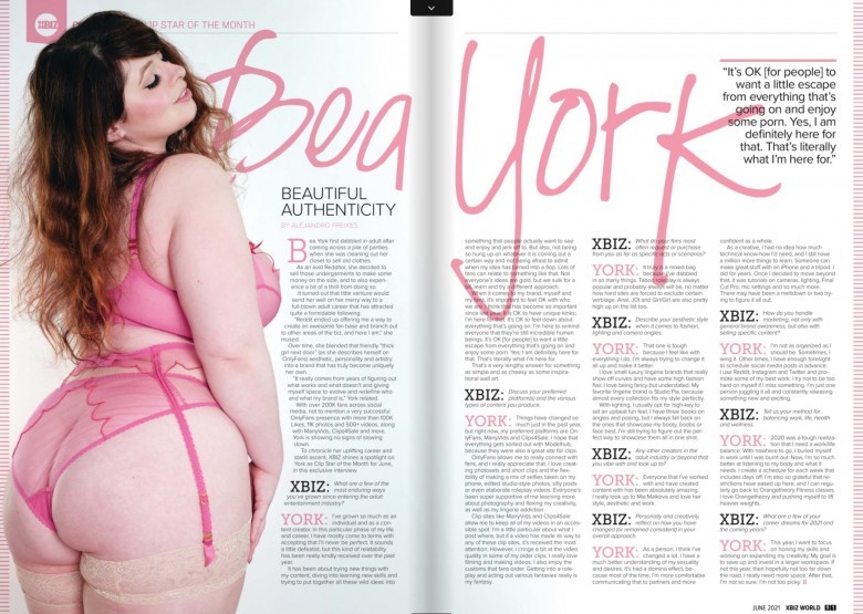 Content Creator Bea York Profiled by XBIZ World & Scores Cover of Clip World
