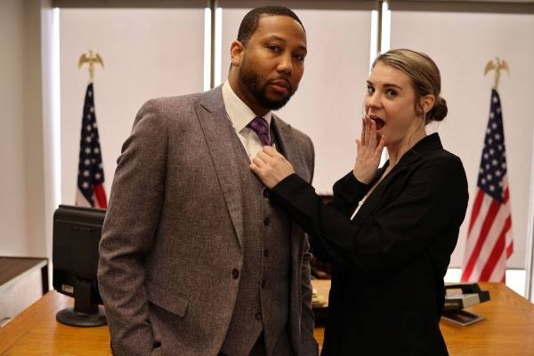 "Politics as Usual (Featuring John Legendary)" opens with Senator Ray Ray on the way to a committee meeting, until John Legendary comes, tells her to sit down, and he's rescheduled all her meetings with her secretary for the day. It takes a lot to get the Senator to stay, but once John slides over the evidence, she's embezzled, and he has a captive audience. He knows about the charity fund, and that senator's been skimming off the top for years. After John shows the Senator the evidence, she asks why he hasn't made a formal complaint yet. The Senator turned down all his dinner invites, and there's one thing he wants. John has an email drafted and ready to send—one button, and the Senator's done. She makes the pretty hard choice and opts for his dick. The two take each other clothes off and get down to some risky business in her office and on her desk. And after the deed is done, the only thing to do is fire her secretary.