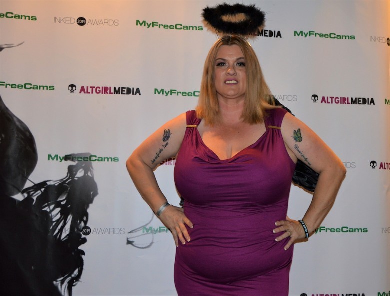 Kimmie was up for multiple Inked Awards nominations, including the fan-voted categories of Best Tits and Best Model Website for kimmiekaboom.com, as well as the panel-voted BBW of the Year. On Saturday night, she walked the infamous purple carpet and attended the tatted star-studded awards show at Pines Manor in Edison, NJ. When they called out the winner for BBW of the Year, Kimmie was overjoyed and took the stage to accept her award. With a three years of being nominated in the same category, finally winning was extremely sweet for Kimmie.