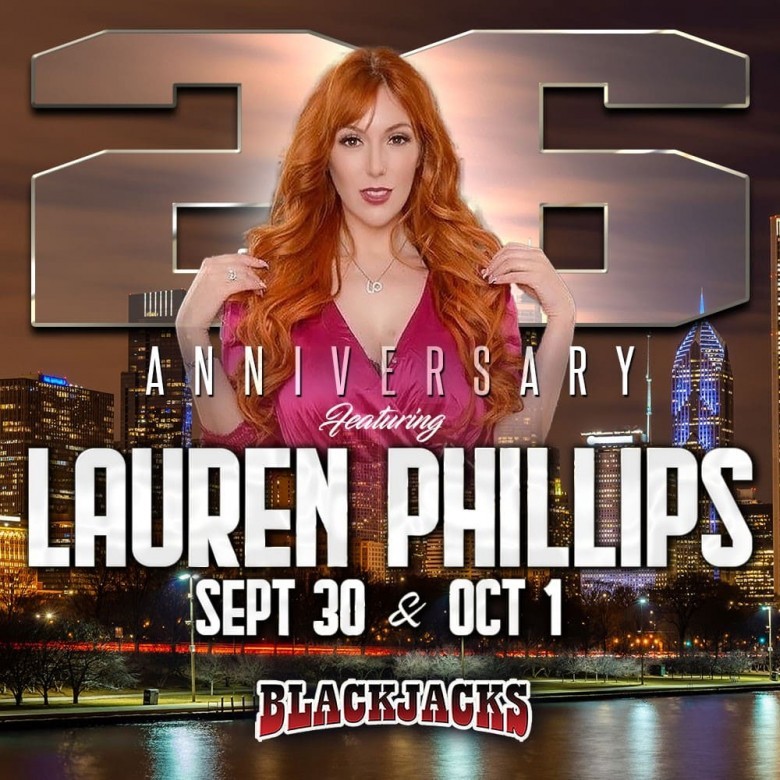 This Friday, September 30th, and Saturday, October 1st, Lauren Phillips will be headlining at Chicago’s best full nude strip club, Blackjacks. And she’s helping them celebrate 26 incredible years of making their patrons happy. Each night, Lauren will hit the main stage with her high-energy shows featuring her incredible dance moves and sexy costumes. She’ll also have multiple meet and greets, giving her fans and club patrons a chance to take a photo with the superstar, buy her exclusive merch (including her Kiiroo stroker), and maybe even get a VIP lap dance from your favorite ginger adult star.