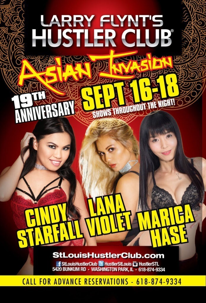 Marica Hase, Cindy Starfall, and Lana Violet are coming together for an Asian Invasion Tour for three nights at Larry Flynt’s St. Louis Hustler Club in Washington Park, Illinois. Thursday, September 16th through Saturday, September 18, the Asian beauties will take to the stage as a group and solo performances all night long.
