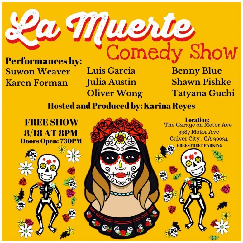 The Garage on Motor Avenue is located at 3387 Motor Avenue in Culver City. And although the show is free, pre-sale tickets are available on a donation basis at eventbrite.com/e/la-muerte-comedy-show-by-karina-reyes-tickets-87453079515. Pre-sale tickets are advised since the show will be standing room only. There will also be a happy hour from 4pm to 7pm.