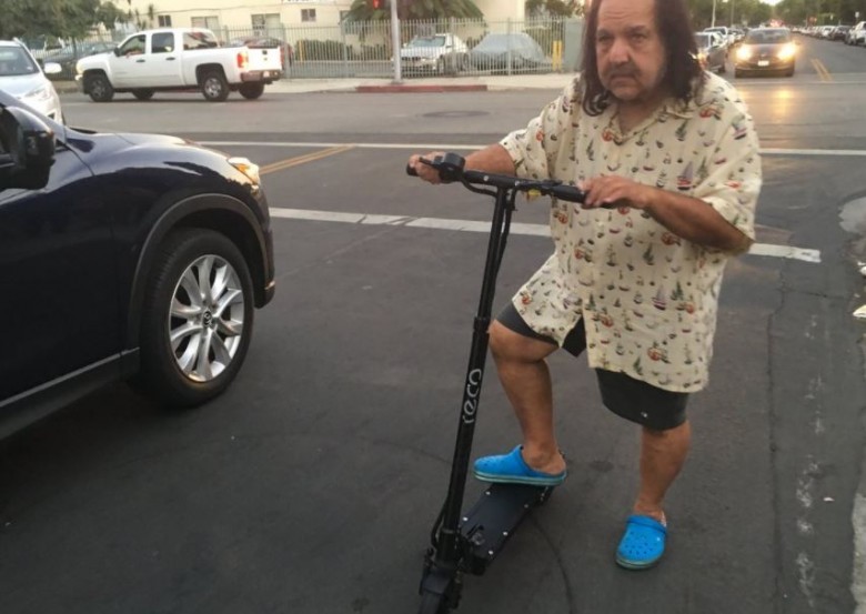 Nope, that's not a homeless guy that could be Ron Jeremy's stunt double. That's the Hedgehog himself pimping Eco Reco Scooters on his Twitter feed. I wonder if they can upgrade his ride to have the optional colostomy bag mount. We love you, Ron - you freaky old bastard.