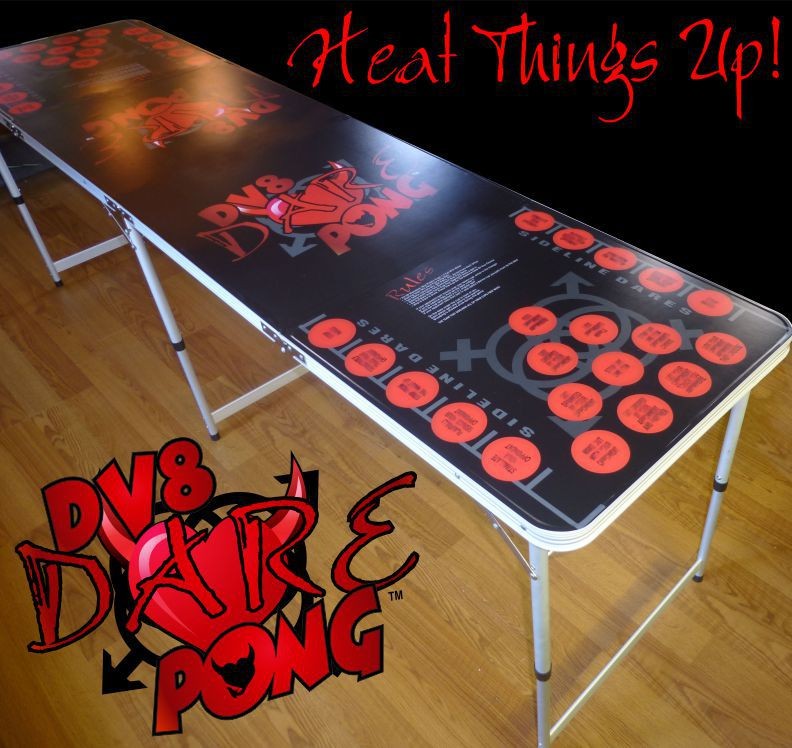 DV8 Dare Pong is a portable Beer Pong table cover that can be placed over any existing pong table, turning beer pong into DV8 Dare Pong™.