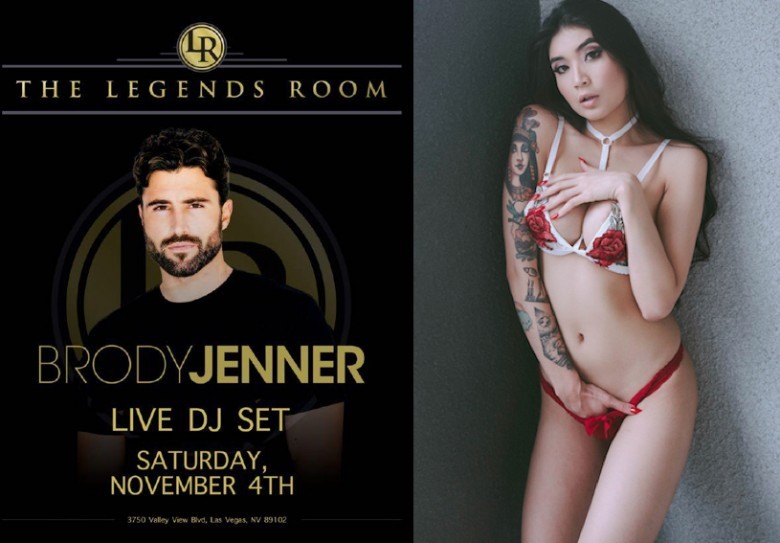 This Saturday, November 4th, exotic, vivacious, tatted Asian adult performer Brenna Sparks is hosting at Legends Room in Las Vegas, and famed socialite, TV star, and DJ, Brody Jenner is spinning.