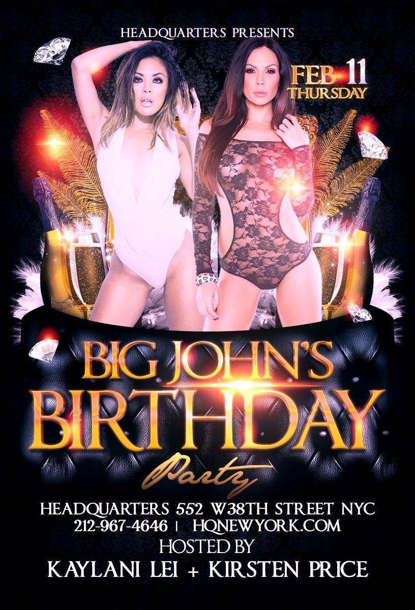 Kaylani Lei and Kirsten Price will appear at Headquarters Gentlemen's Club in Manhattan February 11 to help celebrate club owner Big John's annual birthday bash.