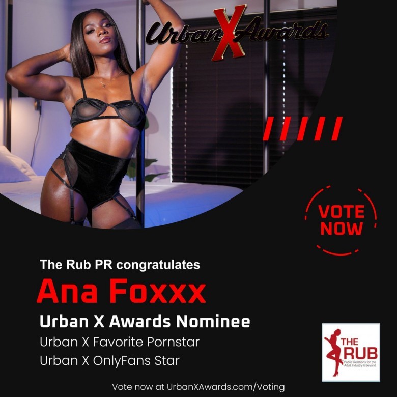 “I was so honored when I found out that I was being inducted into the Urban X Hall of Fame. But I was blown away to see I was nominated not only for Best Female OnlyFans Star but also Porn Star of Year. I’d love to win Porn Star of Year since it’s their Performer of the Year category. So if you’re a fan or industry friend, please vote for me,” says Ana Foxxx.