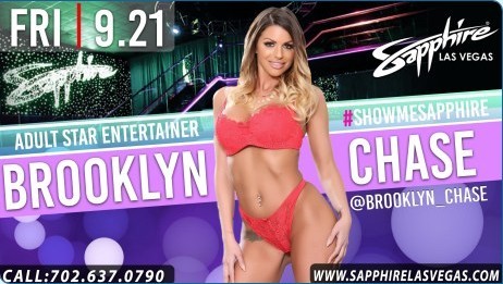 (Hollywood, CA) In June, busty, brunette, shapely stunner Brooklyn Chase appeared at Sapphire Las Vegas and it was standing room only. Now, she’s making her triumphant return this Friday, September 21st.
