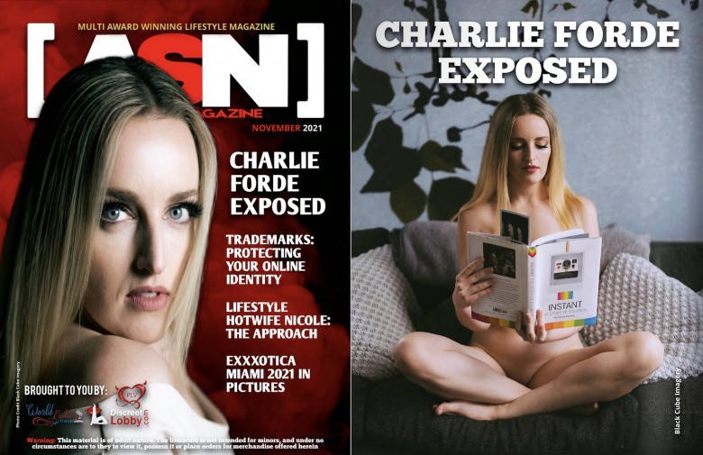 Charlie Forde scored her second publication of 2021, and this time, it’s the cover and 14-page feature in the November issue of ASN Lifestyle Magazine. “Charlie Forde Exposed” is an in-depth look at the Aussie adult star, director, and creator. She talks about the challenges of producing content down under, the relaunch of her site, winning big at the Australian Adult Industry Awards (AAIA), and her infamous butterfly shoot. Charlie also talks about her stellar pole dancing skills, potential upcoming anal scenes, other adult stars she’d like to work with, and much more. Plus, there are tons of photos of Charlie that feature her natural beauty in a variety of settings, including the butterfly shoot with the winged wonders covering her naughty bits.