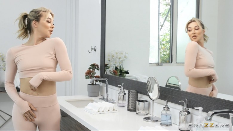“In Bed with the Ex” is Emma’s Brazzers debut. The scene’s premise is Emma is ready to move on after breaking up with Angela White, but Angela just can’t let Emma go. She drops by while Emma is in the shower, lays in their bed, smells the sheets, and reminisces about wild, sexier times. When Emma finds her there, she’s furious and tells to her to call next time, because she doesn’t live there anymore. Angela knows just how to get on her good side and have her way with Emma. The seduction starts with rubbing lotion on Emma’s ass and only gets hotter from there.