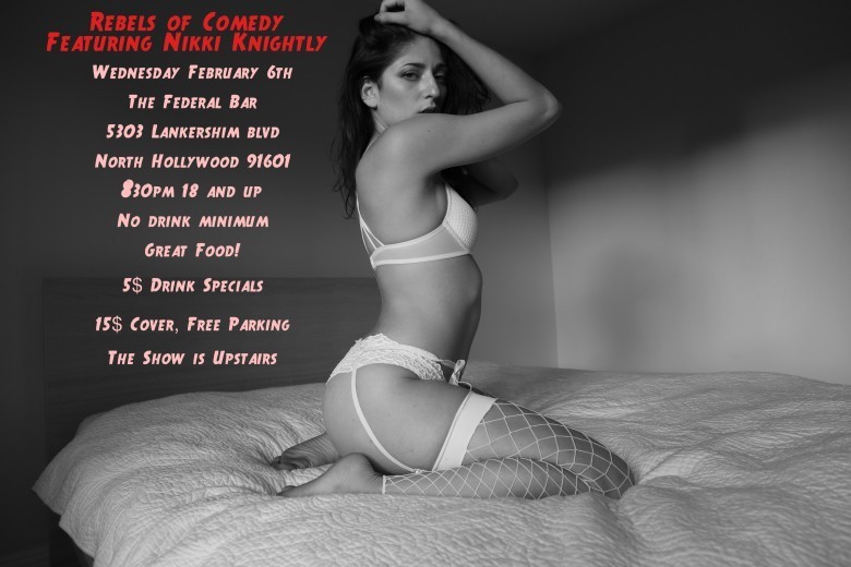 Nikki will be taking the stage to deliver her own brand of comedy along with other talented comedians as a part of the Rebels of Comedy at the Federal Bar located at 5303 Lankershim Blvd. in North Hollywood. Doors open at 8:30pm and the show begins at 8:45pm upstairs. Cover is only $15 and there’s no drink minimum. While you’re there, take advantage of $5 drink specials and great food.
