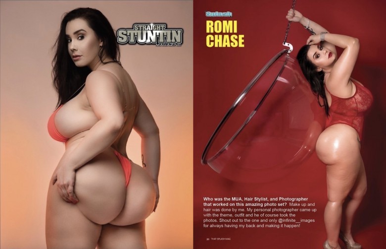 (Miami, FL) Adult content creator, plus-size model, and social media influencer Romi Chase has scored layouts in the current issues of That Splash and Straight STUNTIN magazines that are available for purchase now.