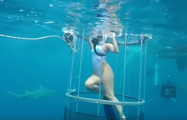 In Camsoda’s first live underwater broadcast attempt, Molly Cavalli jumped into a shark cage off the coast of Florida.